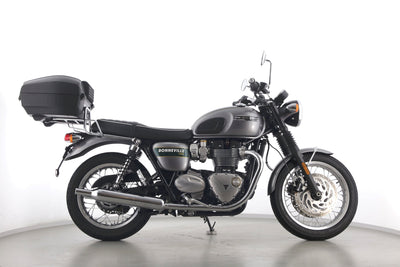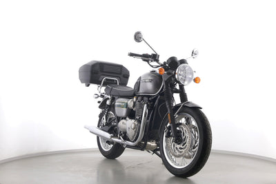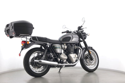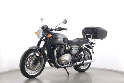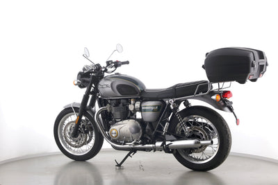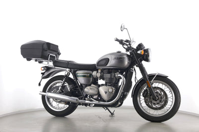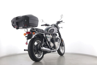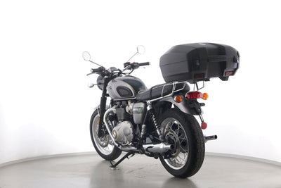 Eine scheckheftgepflegte Triumph Bonneville T120 aus erster Hand in sehr gepflegtem Zustand u.a. mit großem Hepco&Becker-Topcase und Temporegelung.