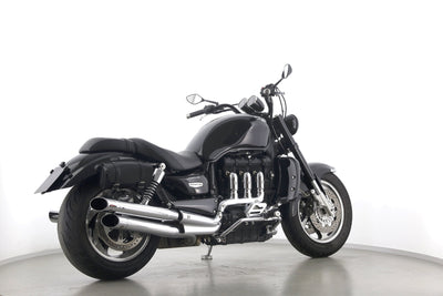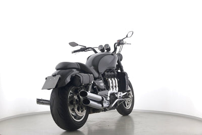 Eine Triumph Rocket III in gepflegtem Zustand u.a. mit kurzem Kennzeichenhalter sowie Highsider-Spiegel.
