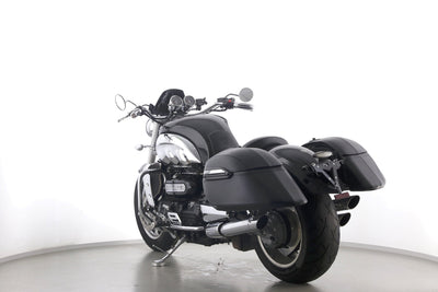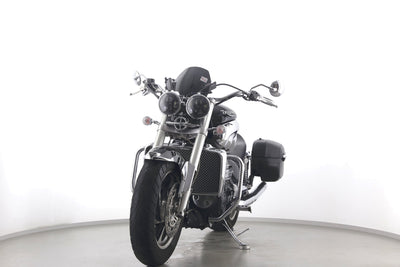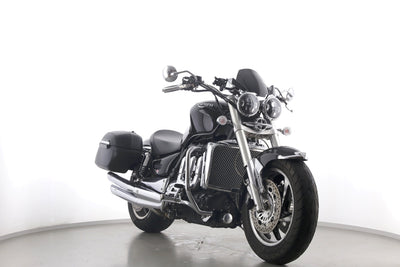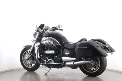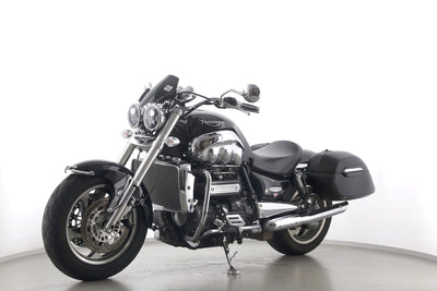 Eine Triumph Rocket III in gepflegtem Zustand u.a. mit Sport-Auspuff sowie Hepco & Becker-Lederkoffer.