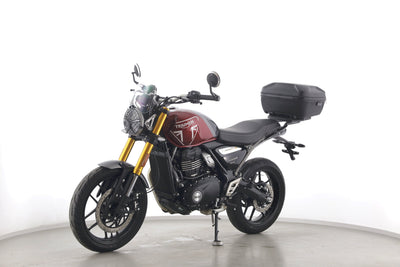 Eine Triumph Speed 400 aus erster Hand als Neufahrzeug u.a. mit Windschild und Topcase.