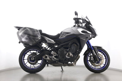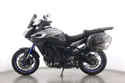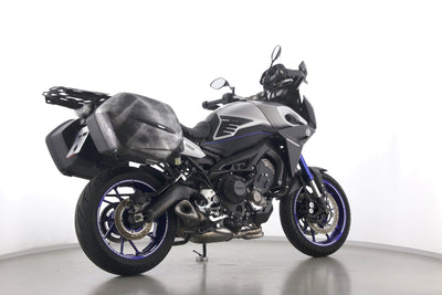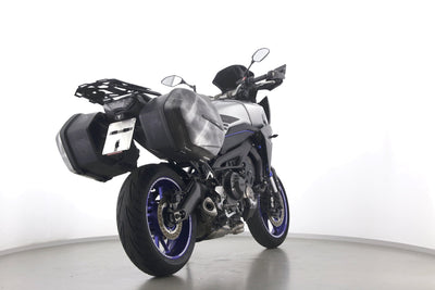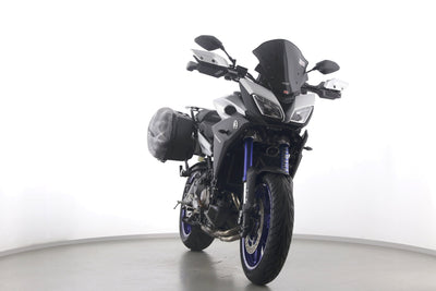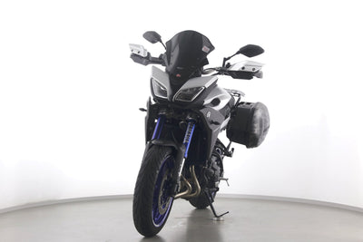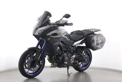 Eine Yamaha MT-09 Tracer in gepflegtem Zustand u.a. mit Yamaha-Koffersystem sowie MRA-Windschild dunkel.