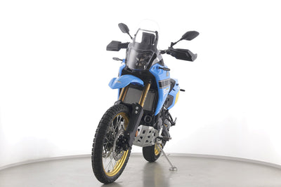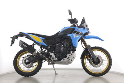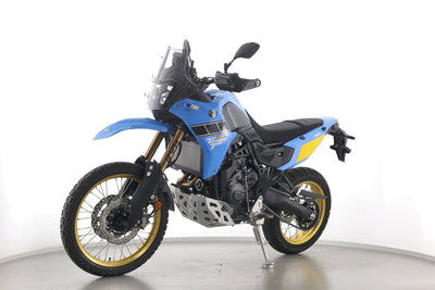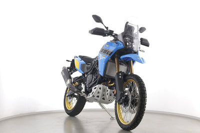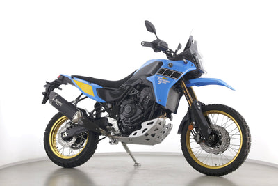 Eine Yamaha Ténéré 700 Rally als Neufahrzeug u.a. mit Akrapovic-Endschalldämpfer.