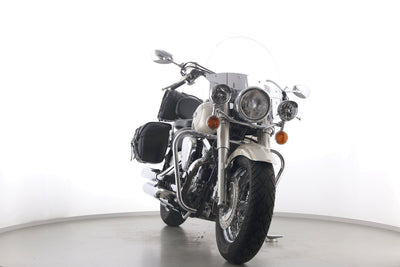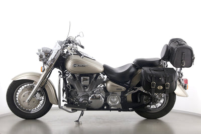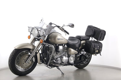 Eine Yamaha XV 1600 Wild Star in gepflegtem Zustand u.a. mit Sturzbügel sowie großem Touring-Windschild.